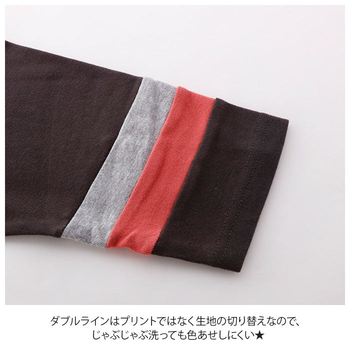 ・裾部分にはさりげないブランドタグがちらり。ダブルラインはプリントではなく生地の切り替えなので、じゃぶじゃぶ洗っても色あせしにくい★