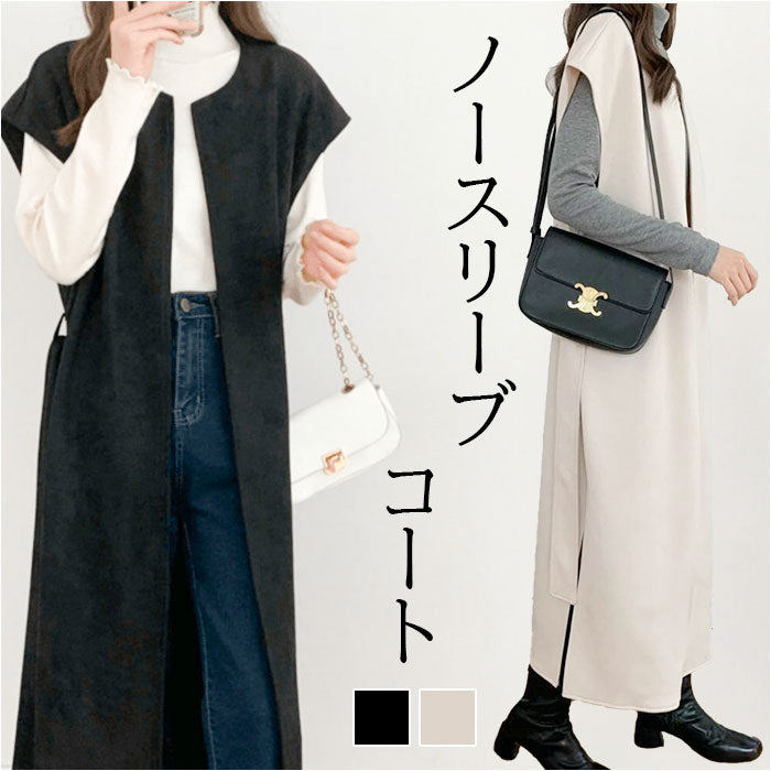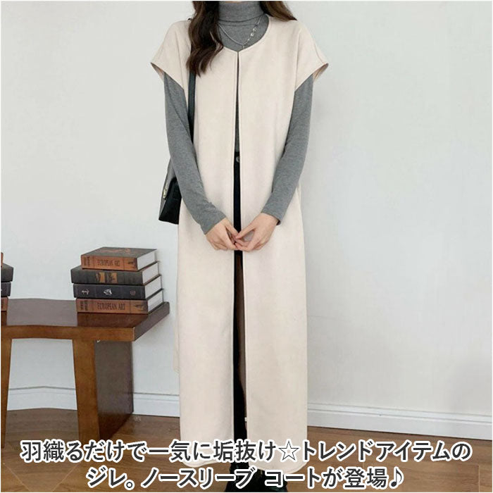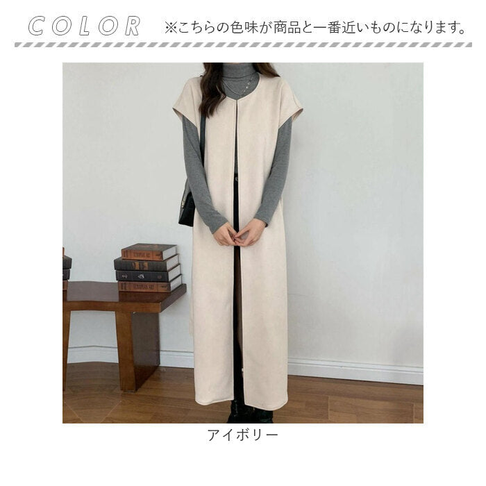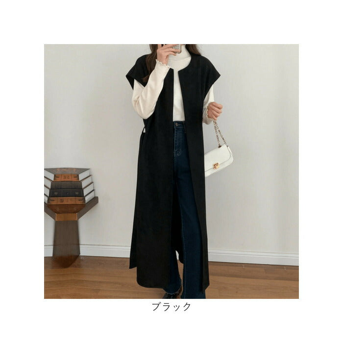 ケープ ジャケット コート レディース ロング 通販 ポンチョ ベスト ジレ マント ショール ロングコート ロング丈 サイドスリット スリット ノーカラー スエード 無地 シンプル きれいめ