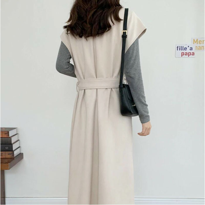・ジレと同色のベルトつき。ウエストマークができるので、スタイルアップ効果も期待できる◎