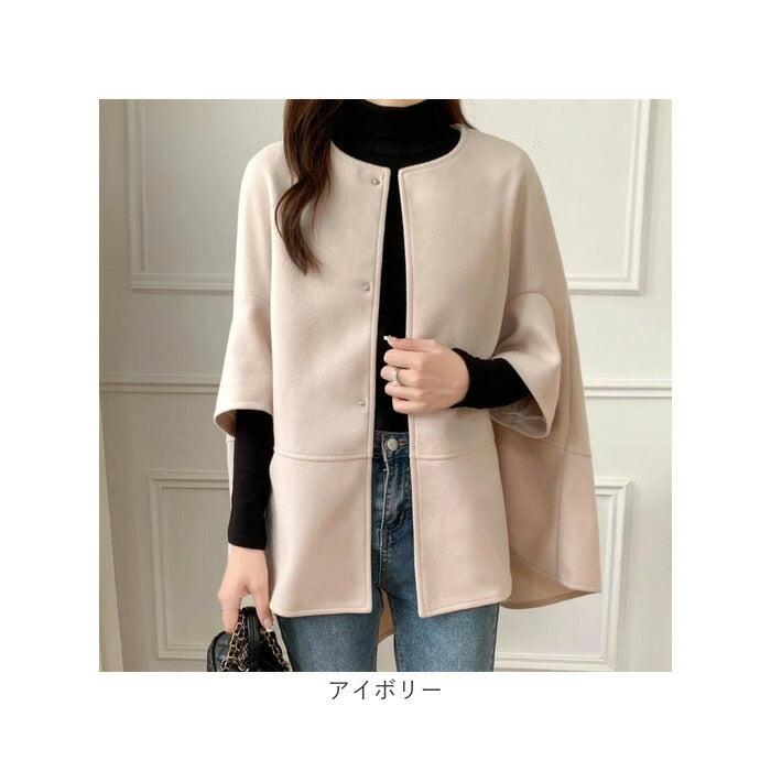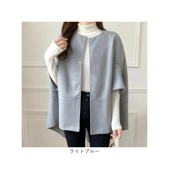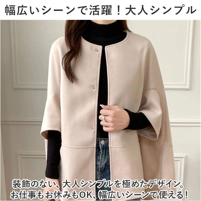 ケープ ジャケット コート レディース 通販 ポンチョ ベスト ジレ マント ショール ドルマンスリーブ ドルマン 前開き ボタン 無地 シンプル カジュアル 防寒 きれいめ 暖かい あたたかい