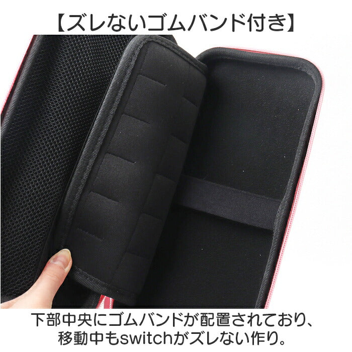・下部中央にゴムバンドが配置されており、移動中もswitchがズレない作り。