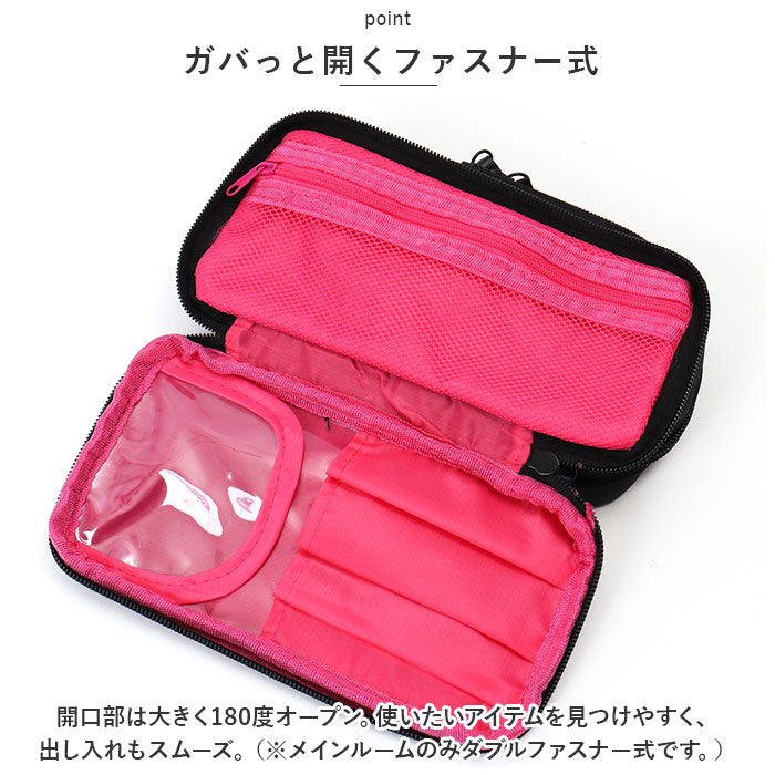 ・毎日使う一軍アイテムをまとめておけて便利!バッグの中でもかさばりにくいスリムフォルムで、旅行やお泊まり会の際にも活躍。
