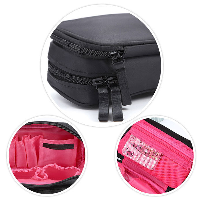 ・サブルームに、メイクブラシを収納できるポケット&メッシュポケットを配置。ブラシポケットには、汚れの付着を防ぐクリアフラップ付き。