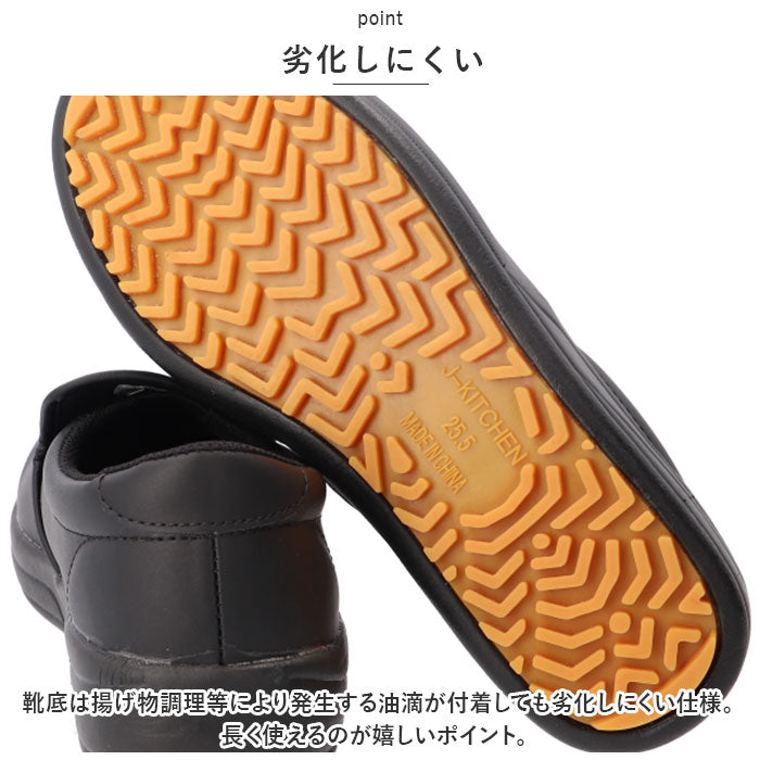 ・靴底は揚げ物調理等により発生する油滴が付着しても劣化しにくい仕様。長く使えるのが嬉しいポイント。