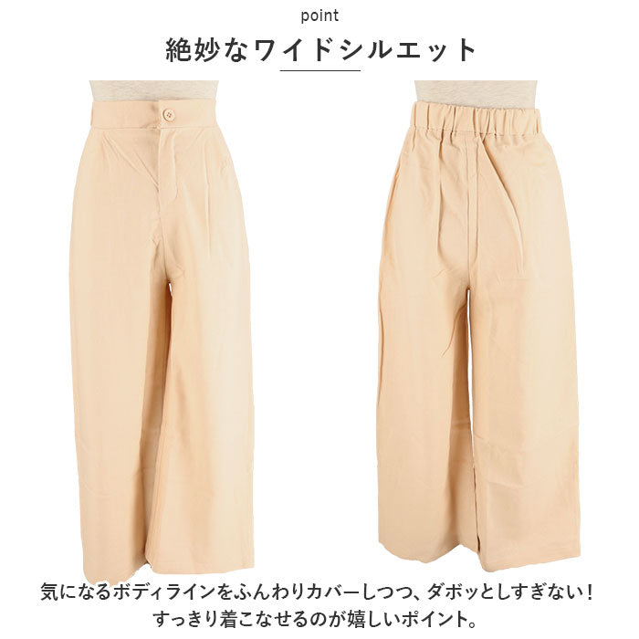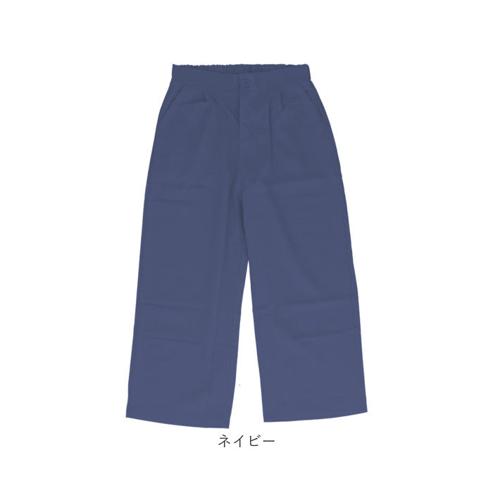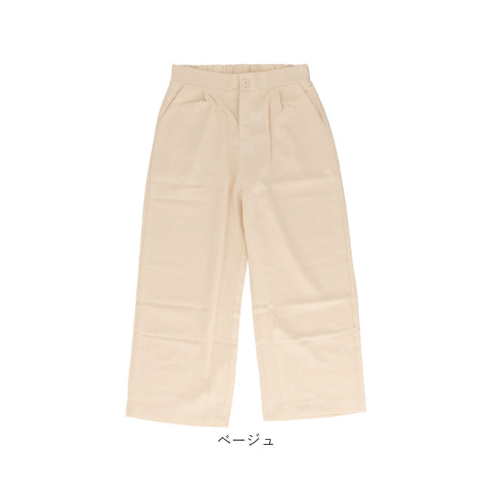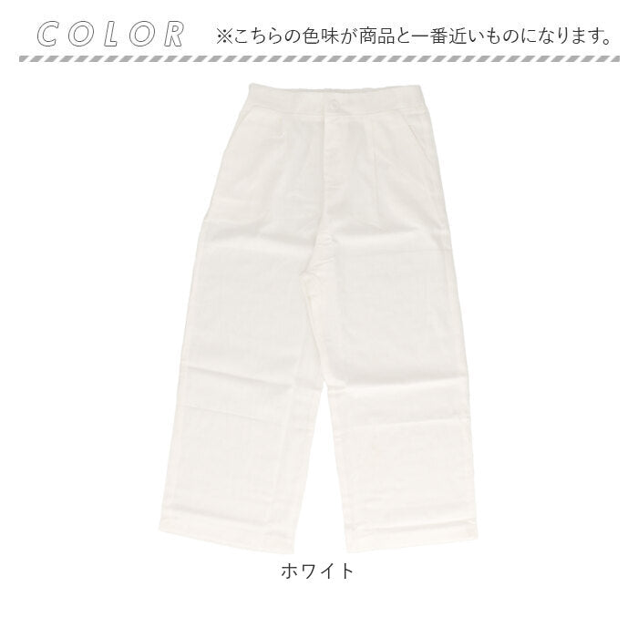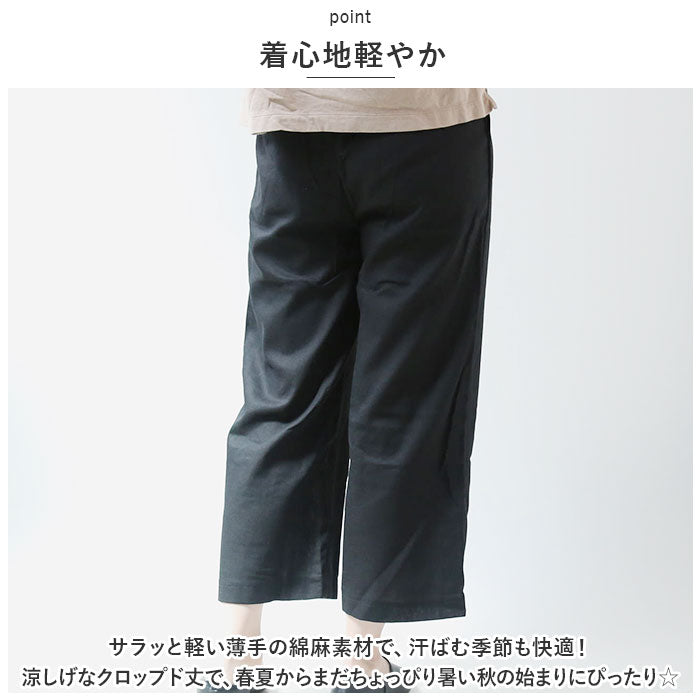 コットンリネンパンツ 通販 ワイドパンツ クロップドパンツ パンツ ボトムス ロングパンツ 綿 麻 クロップド丈 後ろゴム ポケット 無地 シンプル ナチュラル 春 夏 秋 通勤 通学 オフィス