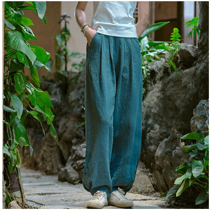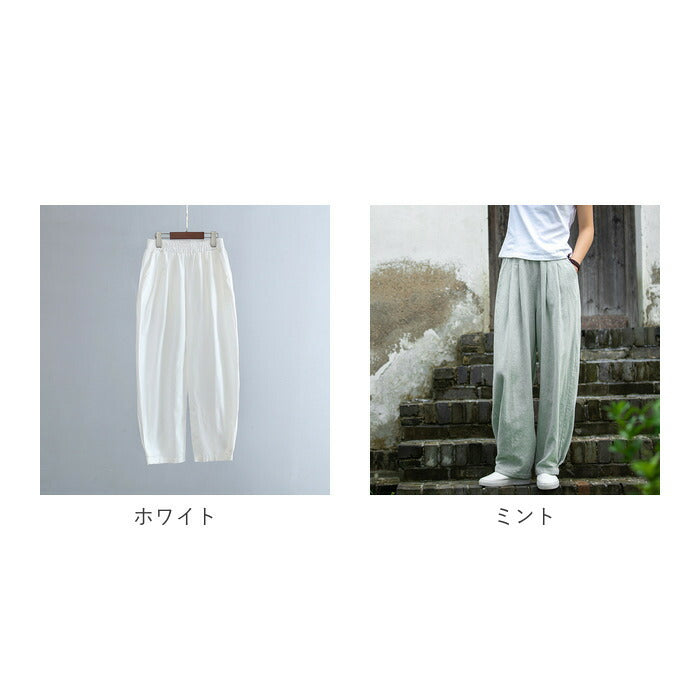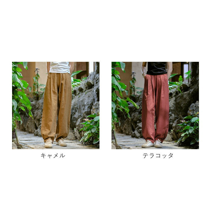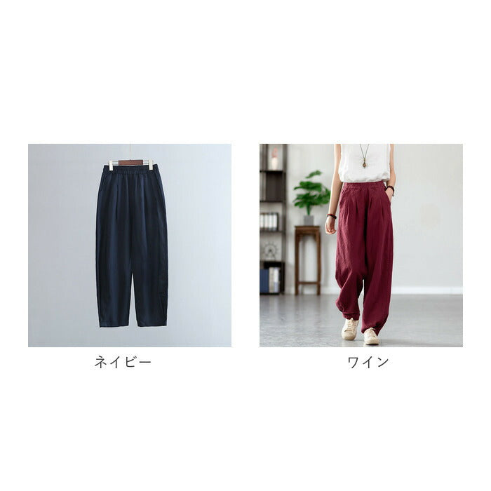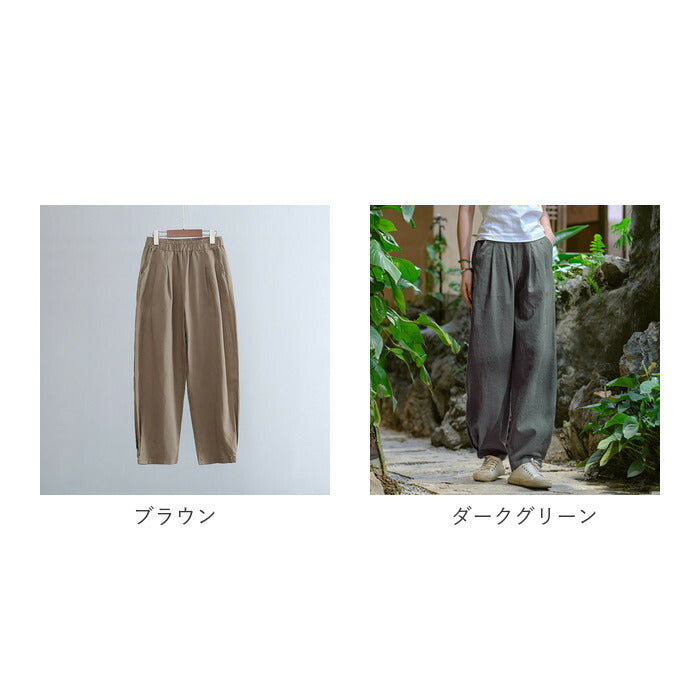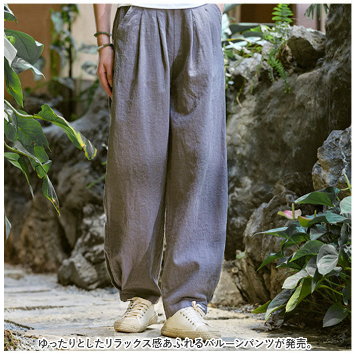 コットンリネン バルーンパンツ 通販 サルエルパンツ ワイドパンツ イージーパンツ ズボン パンツ ボトムス レディース メンズ ウェストゴム 総ゴム ポケット 体型カバー 綿麻キャンバス