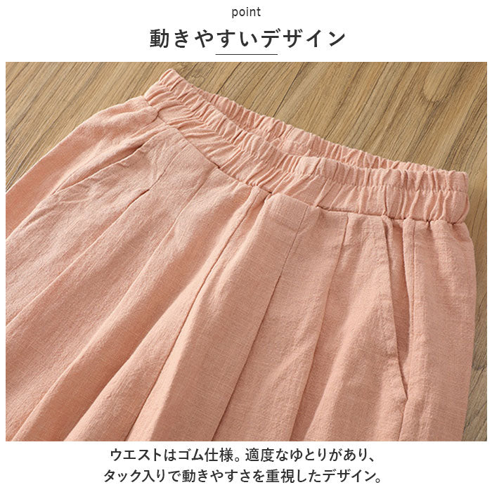 ・ウエストはゴム仕様。適度なゆとりがあり、タック入りで動きやすさを重視したデザイン。