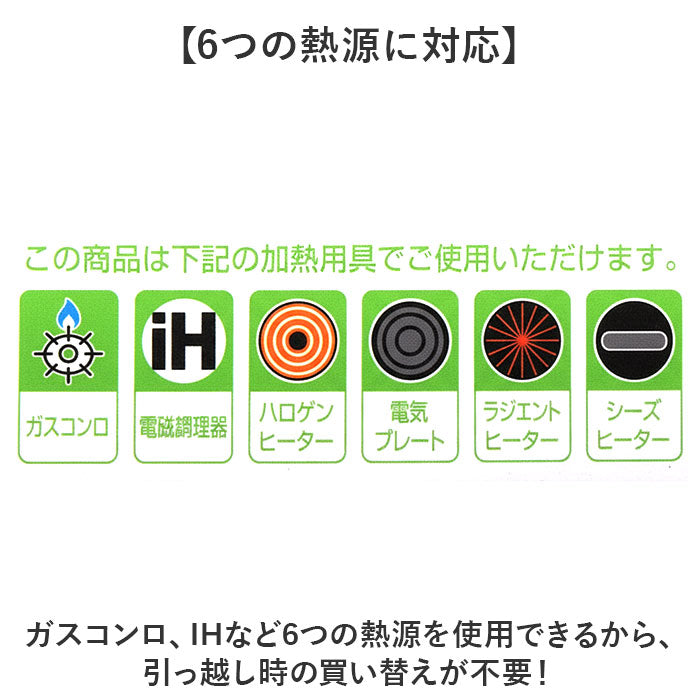 ・ガスコンロ、IHなど6つの熱源を使用できるから、引っ越し時の買い替えが不要!