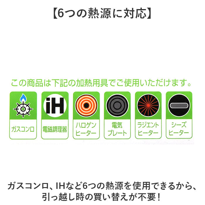 ・ガスコンロ、IHなど6つの熱源を使用できるから、引っ越し時の買い替えが不要!