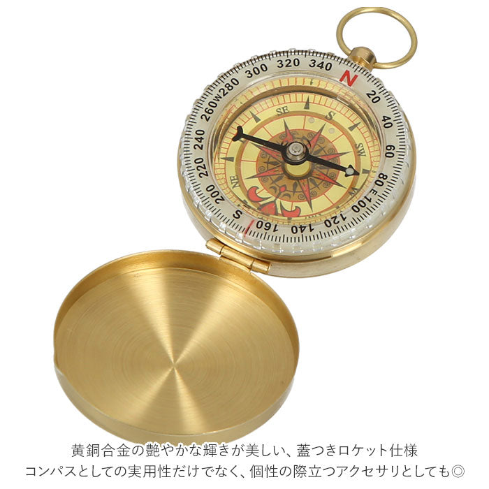 ・黄銅合金の艶やかな輝きが美しい、蓋つきロケット仕様。コンパスとしての実用性だけでなく、個性の際立つアクセサリとしても◎