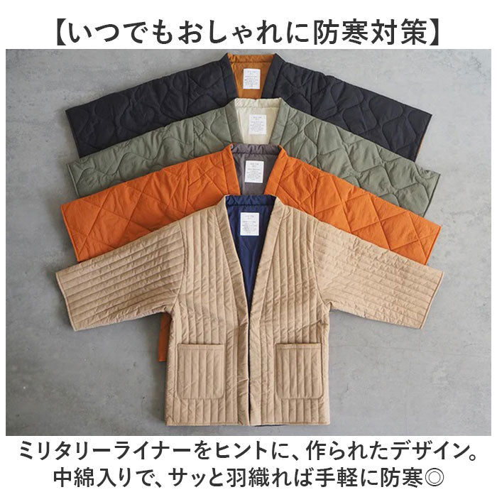 ・ミリタリーライナーをヒントに、作られたデザイン。中綿入りで、サッと羽織れば手軽に防寒◎