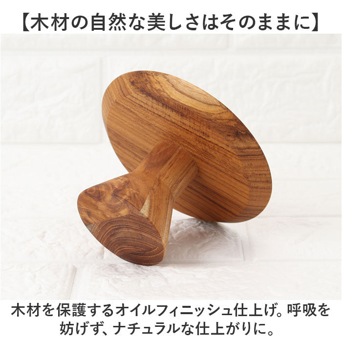 ・木目が美しく、優しい風合いのチーク材スタンド。経年変化を楽しめるのも魅力の1つ。