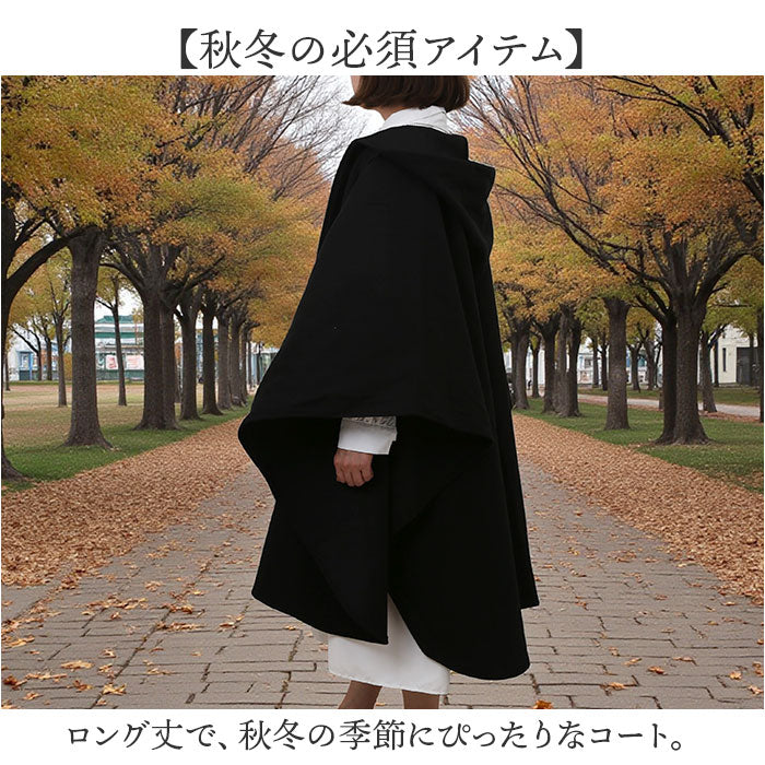 コート レディース 通販 ポンチョ マント フード付き ポンチョコート 秋 冬 ロングコート 無地 ロング ブラック 黒 アウター きれいめ ロング丈 シンプル おしゃれ オシャレ 通勤 20代