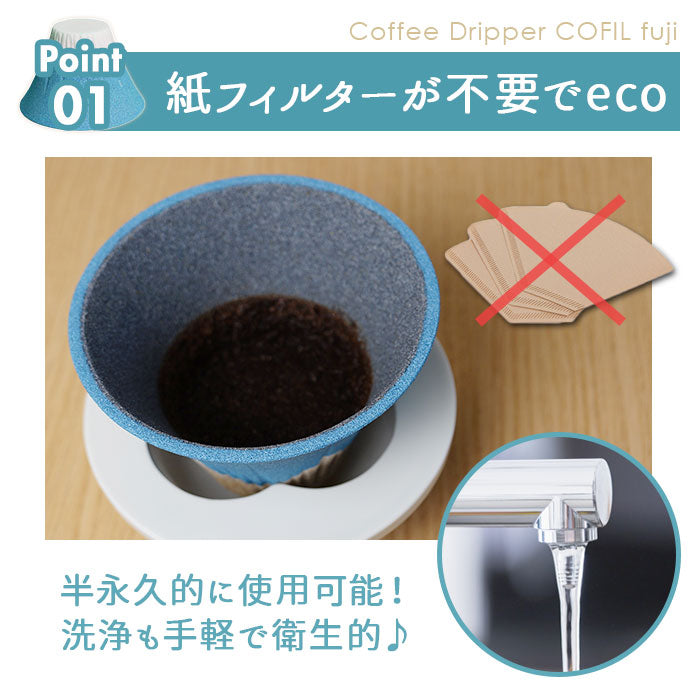コーヒーフィルター コーヒードリッパー 通販 コーヒー セラミックフィルター 富士山 富士 セラミック 円錐 器具 ドリップ COFIL fuji ペーパーレス エコ おしゃれ 有田焼 波佐見焼 陶器 まろやか コフィル 在宅 ギフト かわいい プレゼント