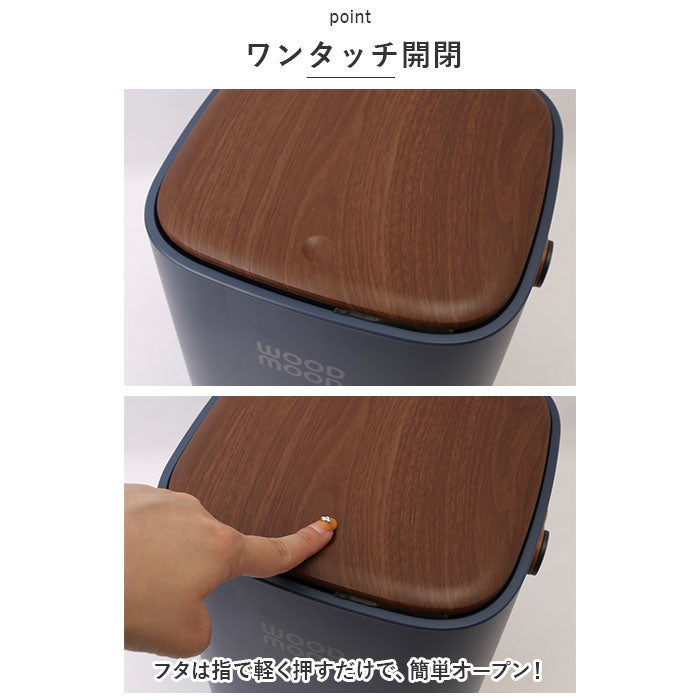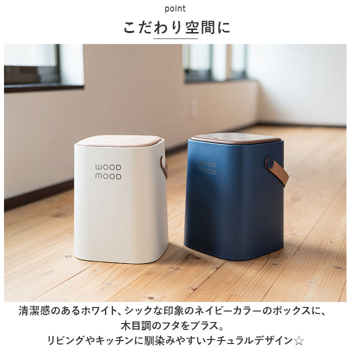 ・清潔感のあるホワイト、シックな印象のネイビーカラーのボックスに、木目調のフタをプラス。リビングやキッチンに馴染みやすいナチュラルデザイン☆