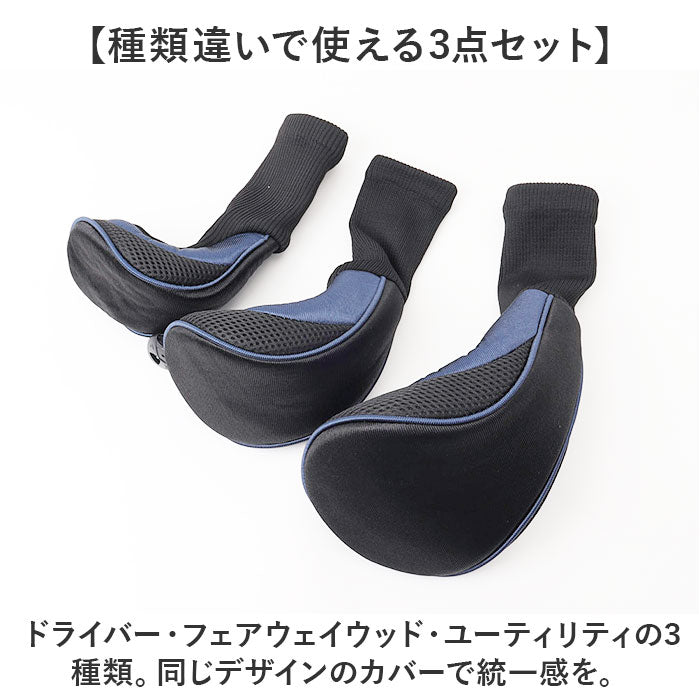 ・ドライバー・フェアウェイウッド・ユーティリティの3種類。同じデザインのカバーで統一感を。