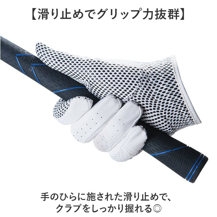 ・通気性と伸縮性を兼ね備えた両手用ゴルフグローブ。