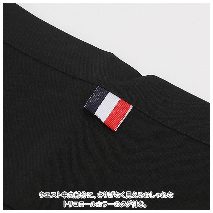 ・ウエスト中央部分に、さりげなく見えるおしゃれなトリコロールカラーのタグ付き。