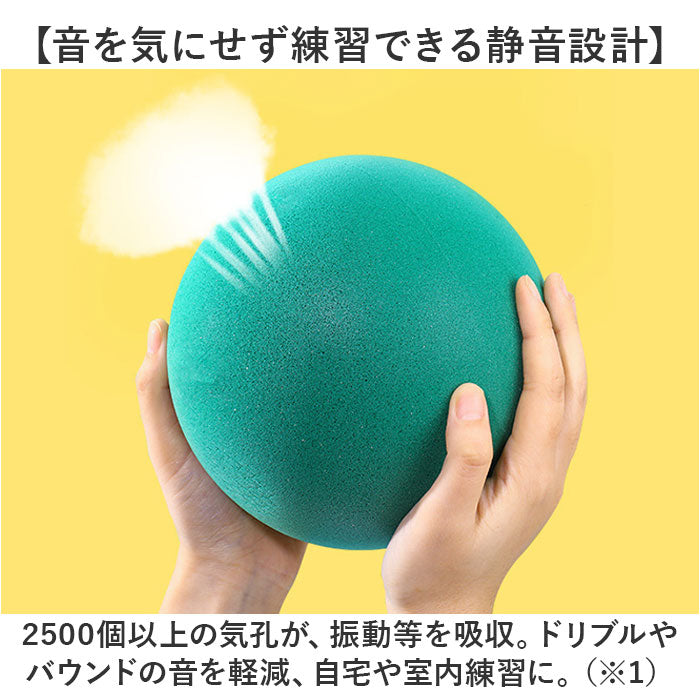 ・2500個以上の気孔が、振動等を吸収。ドリブルやバウンドの音を軽減、自宅や室内練習に。