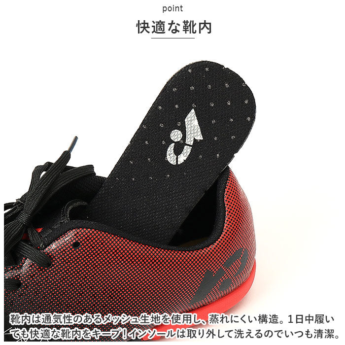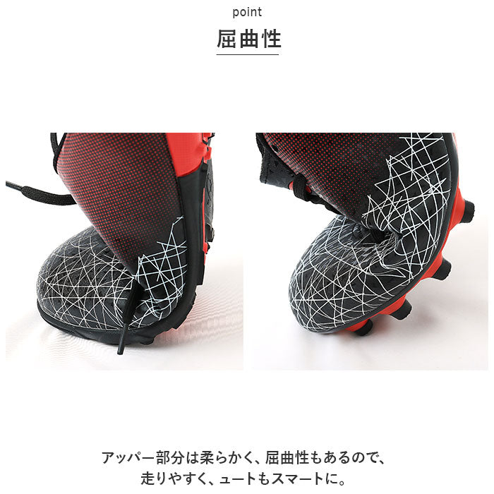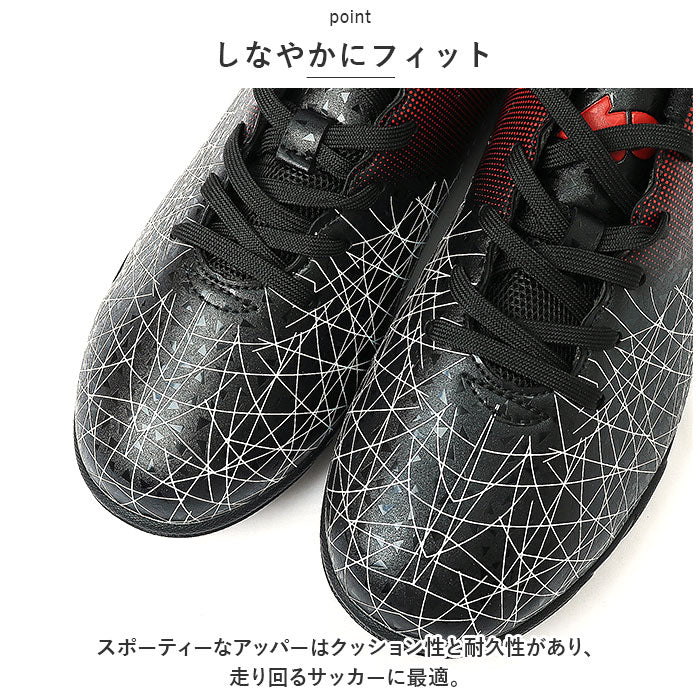 ・スポーティーなアッパーはクッション性と耐久性があり、走り回るサッカーに最適。