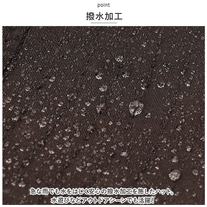 ・急な雨でも水をはじく安心の撥水加工を施したハット。水遊びなどアウトドアシーンでも活躍!