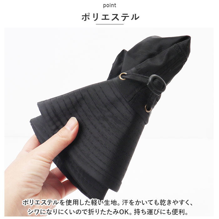・ポリエステルを使用した軽い生地。汗をかいても乾きやすく、シワになりにくいので折りたたみOK。持ち運びにも便利。