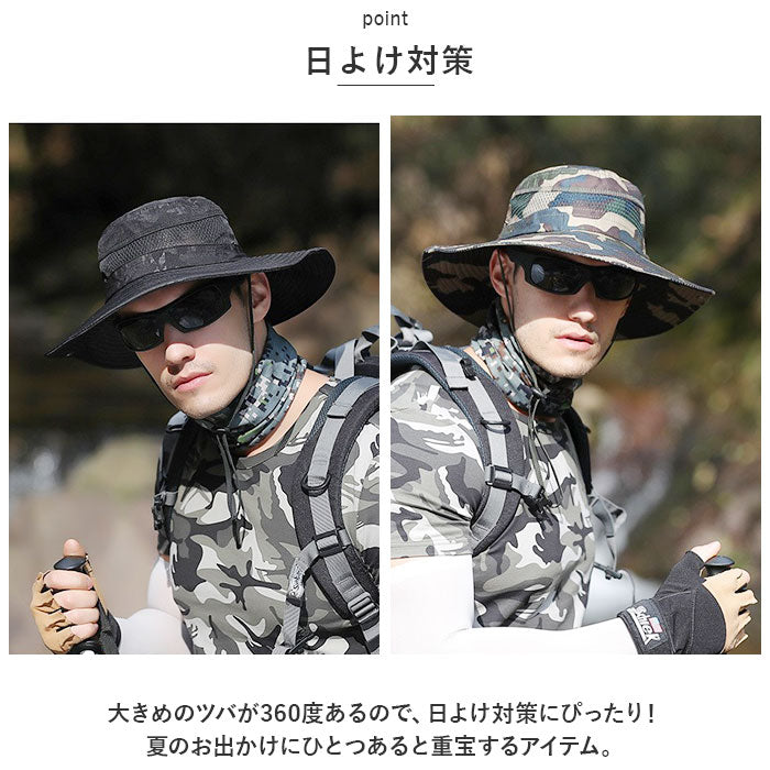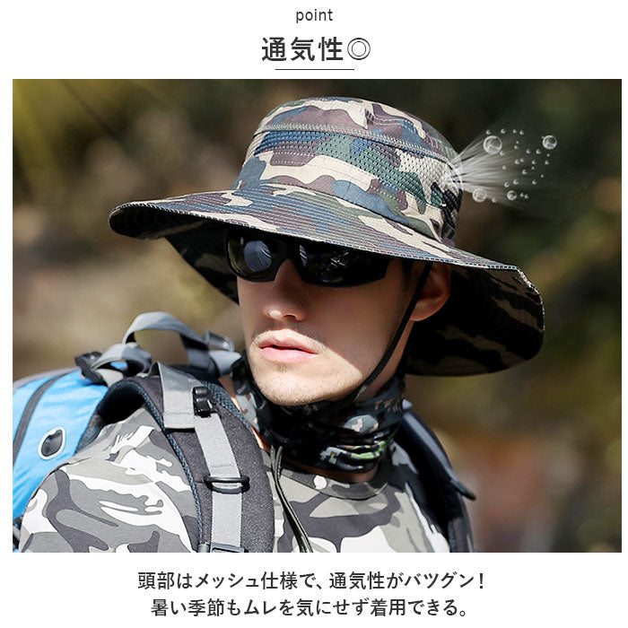 サファリハット メンズ 通販 ジャングルハット 帽子 ぼうし カモフラ ハット 釣り キャンプ 広いつば 通気性 速乾 コンパクト 携帯 折りたたみ あご紐 スポーツ メンズファッション 登山