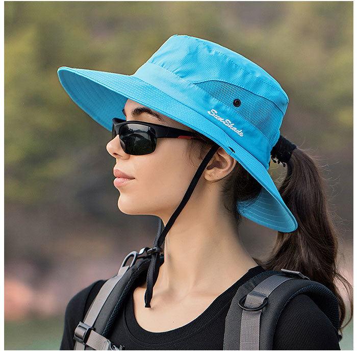 ・大きめのツバでしっかり日よけ対策。結んだ髪を通せる、女性に嬉しい仕様。「サファリハット」が登場。