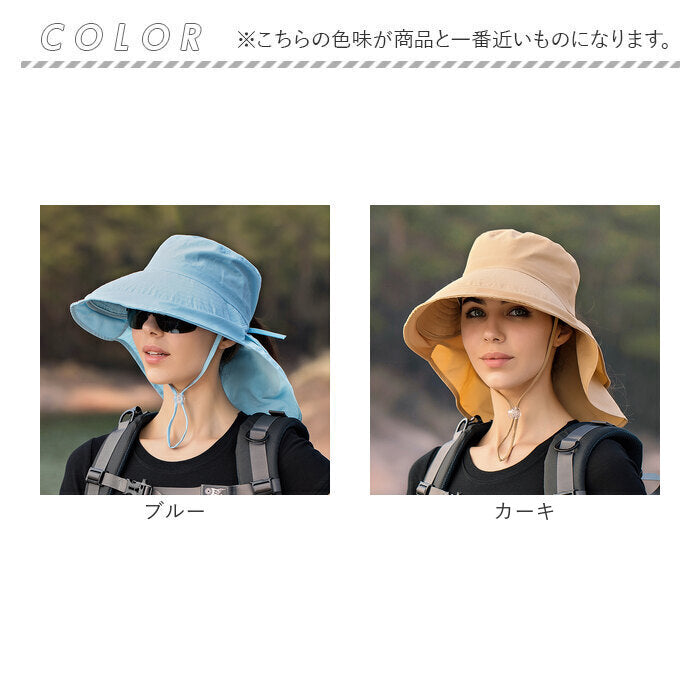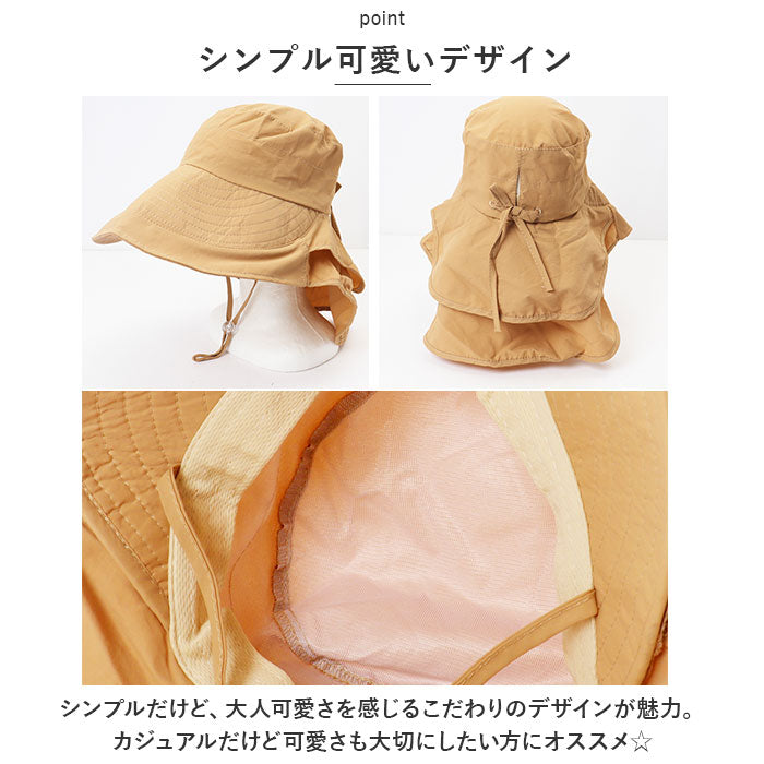 ・大きめのツバと首をガードする日よけ付き!360度しっかり守ってくれるので、日よけ対策にぴったり!夏のお出かけに必須のアイテム。