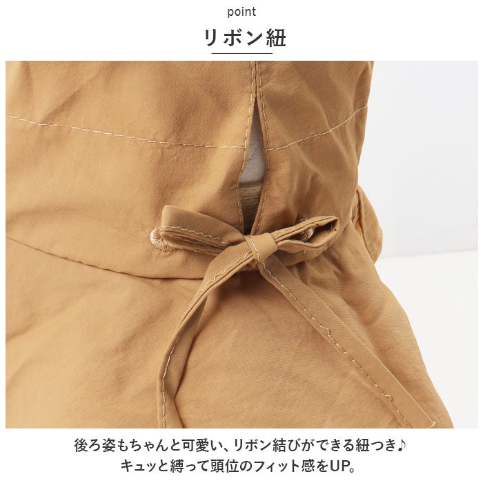 ・後ろ姿もちゃんと可愛い、リボン結びができる紐つき♪キュッと縛って頭位のフィット感をUP。