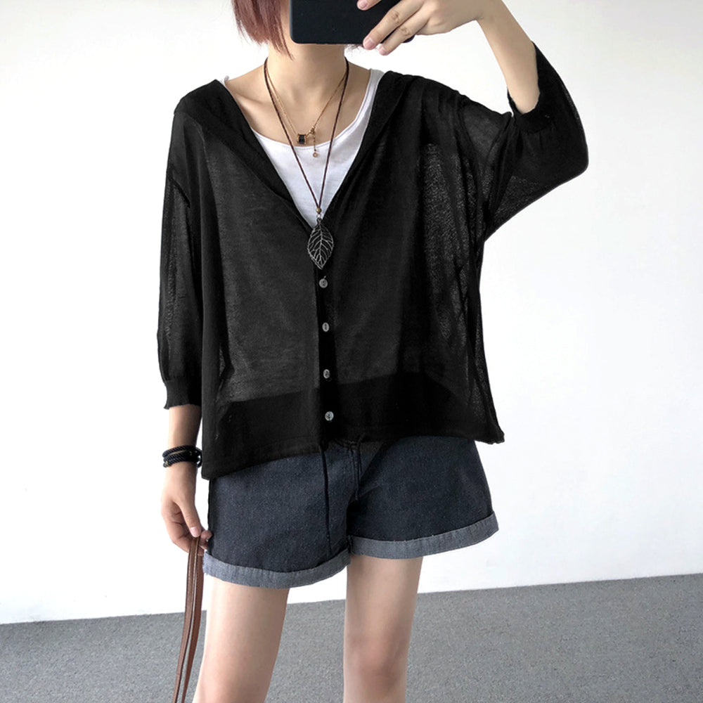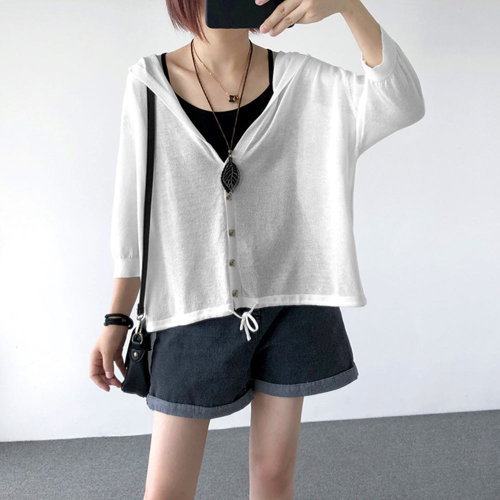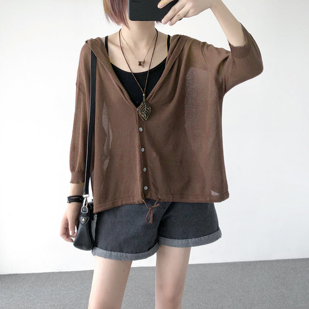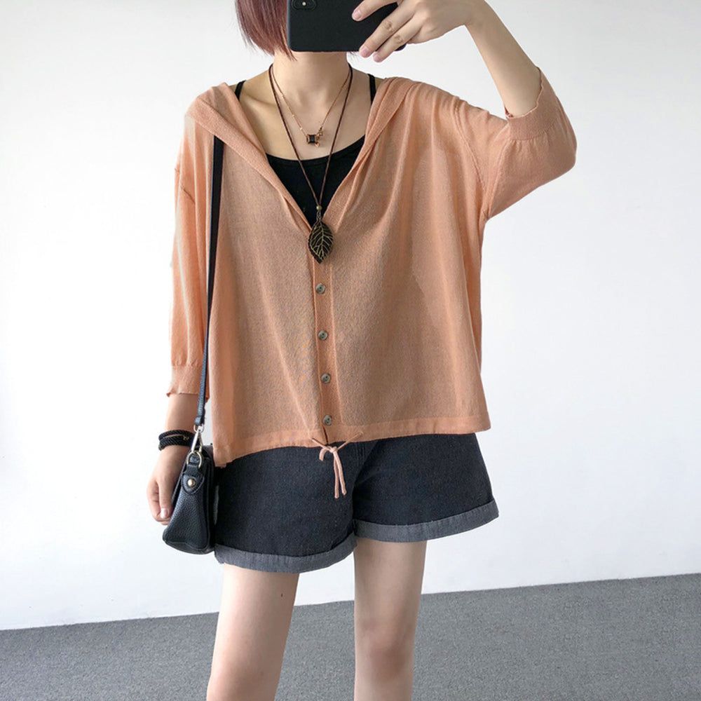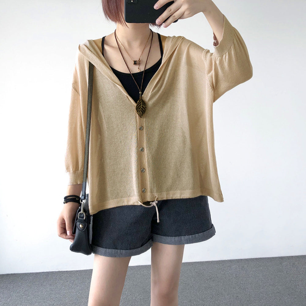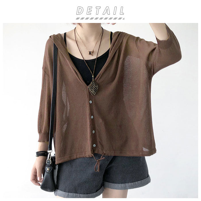 サマーニット カーディガン 通販 レディース 薄手 夏用 大きい 麻 リネン uv きれいめ 春夏 かわいい 7分袖 羽織り フード カジュアル おしゃれ 服 トップス
