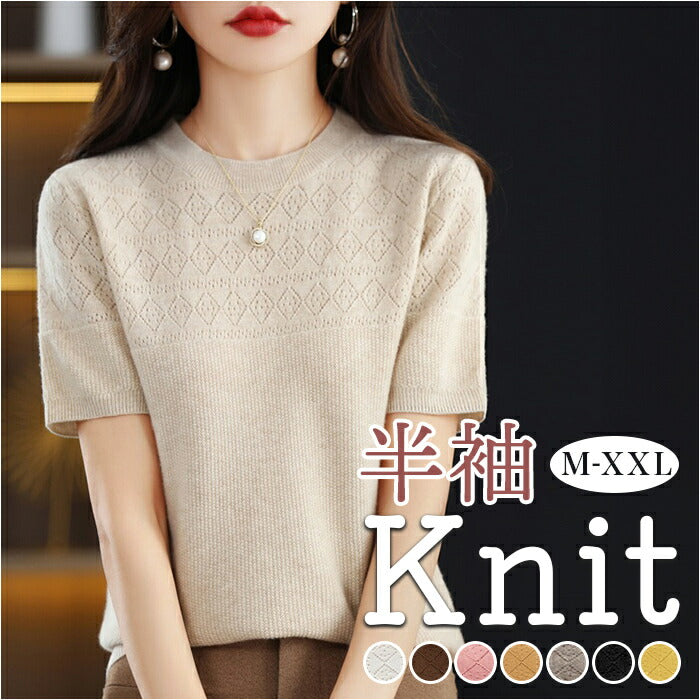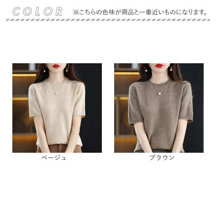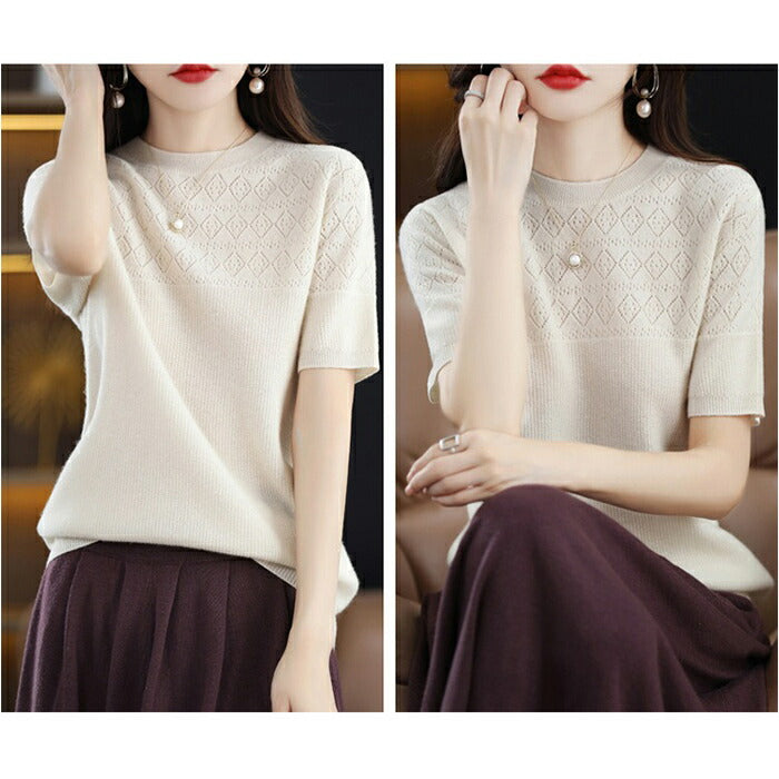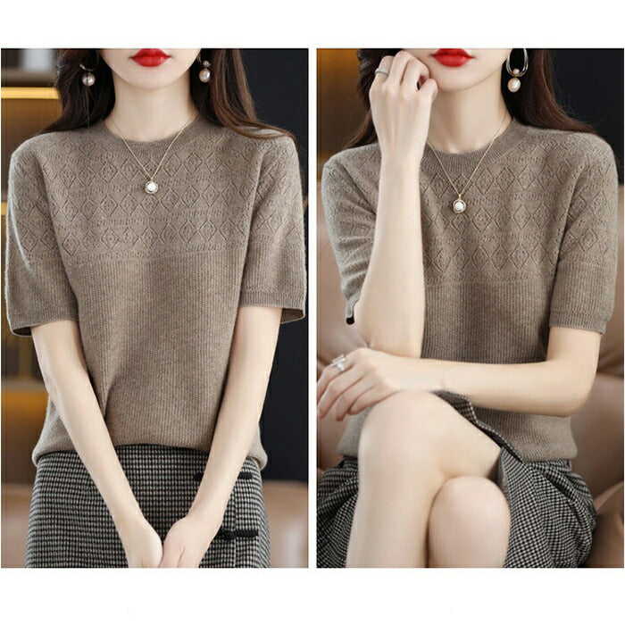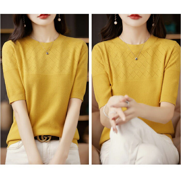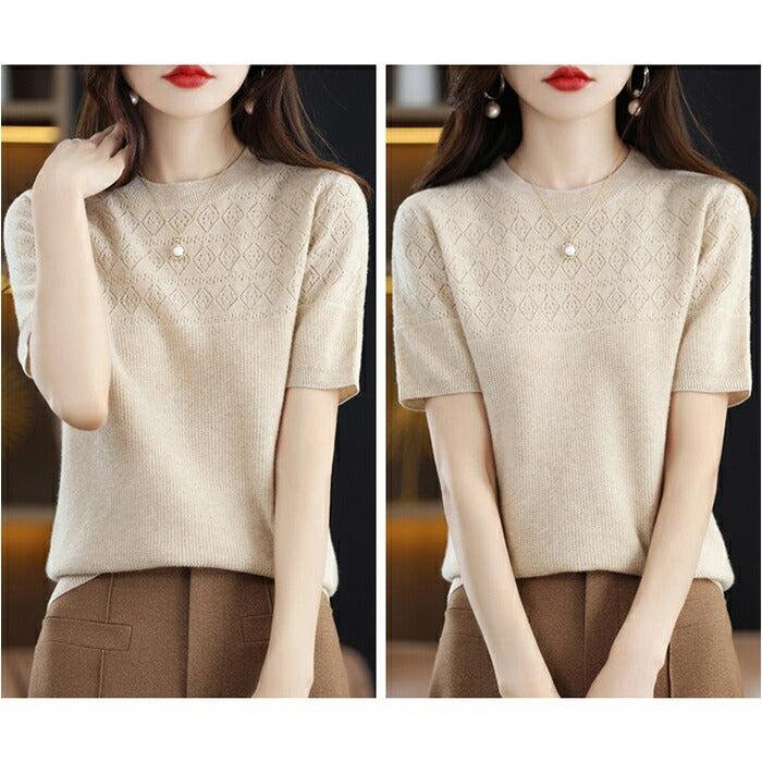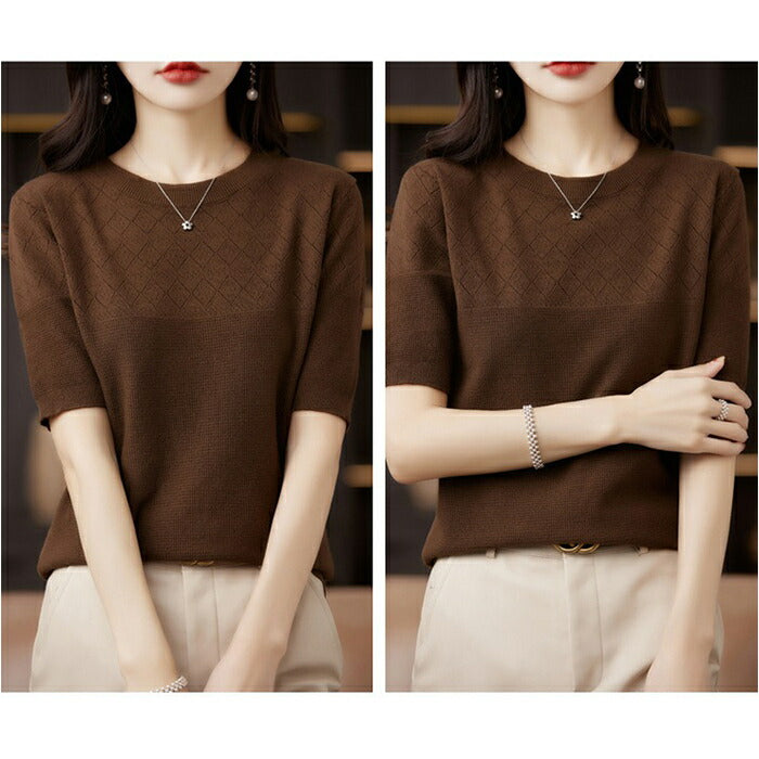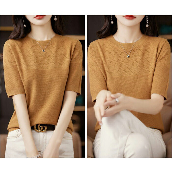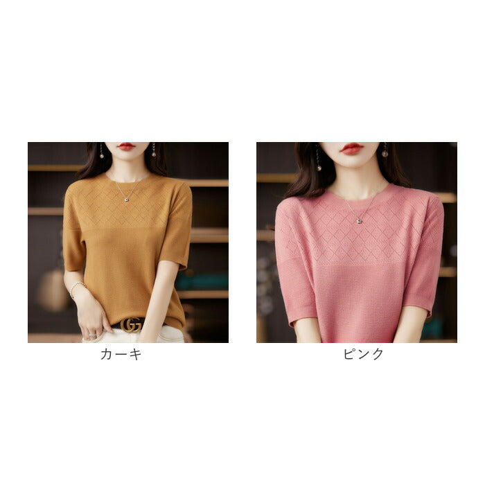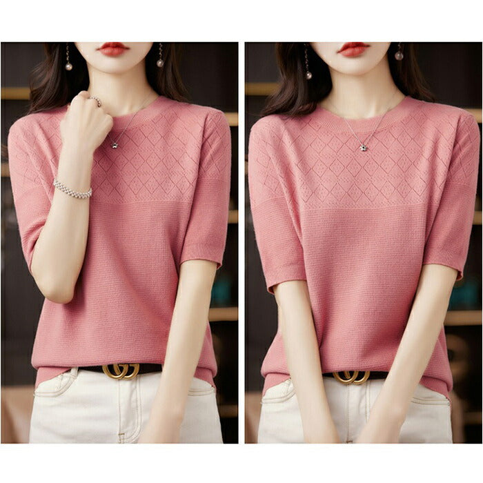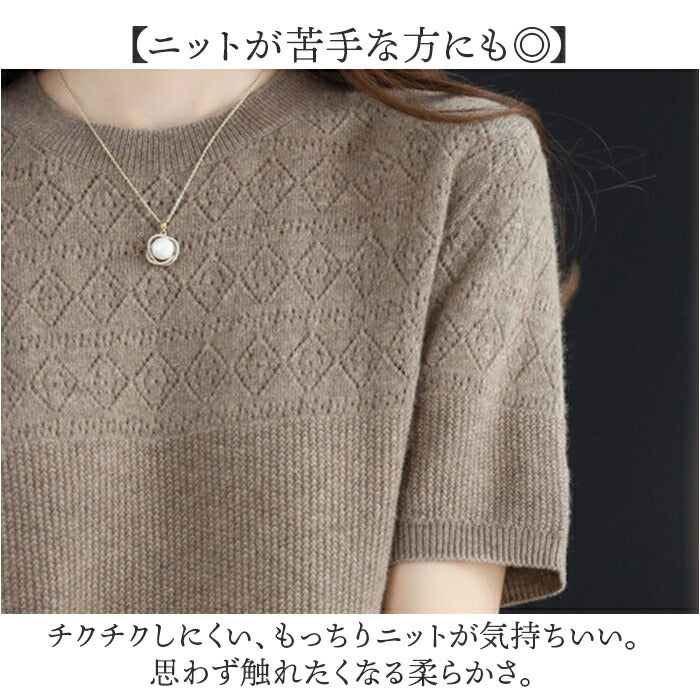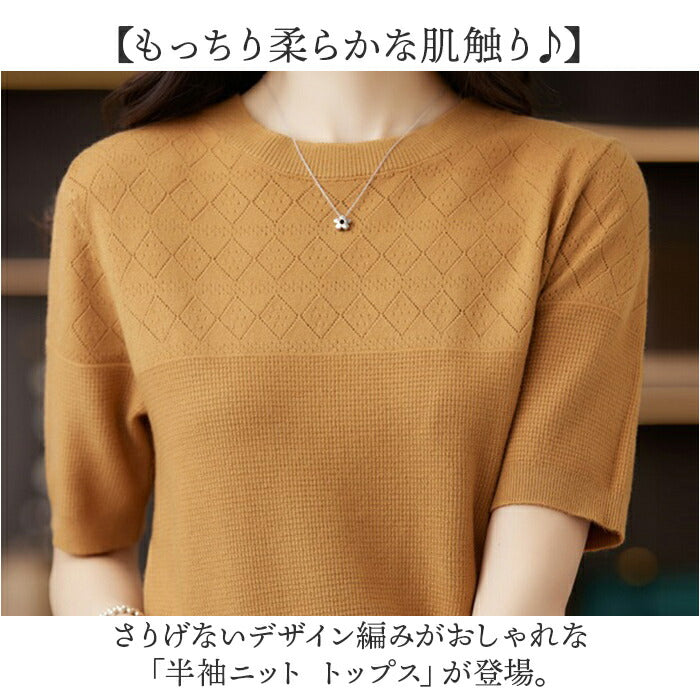 ・さりげないデザイン編みがおしゃれな「半袖ニット トップス」が登場。