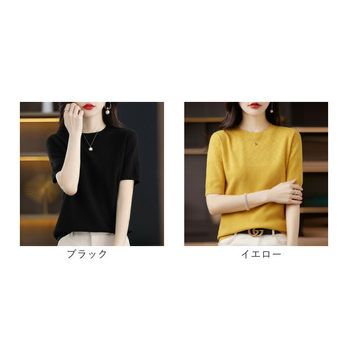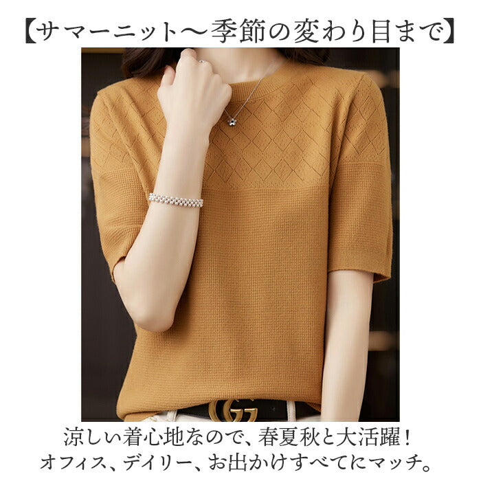 サマーニット 半袖 レディース 通販 半袖ニット ニット トップス サマーセーター 春 秋 夏 薄手 上品 通勤 クルーネック オフィス かわいい カジュアル 大人 可愛い おしゃれ カットソー