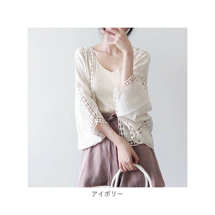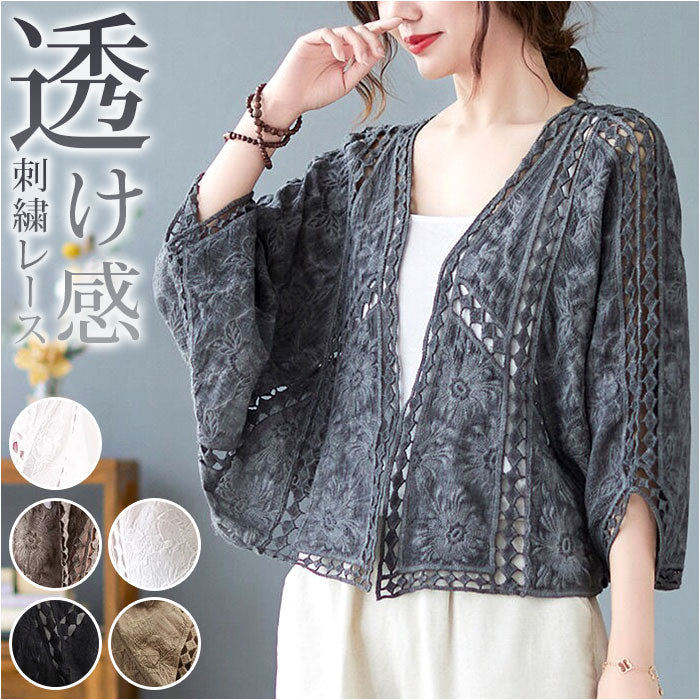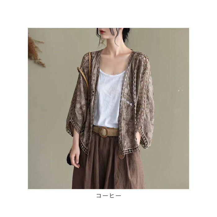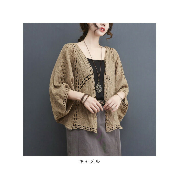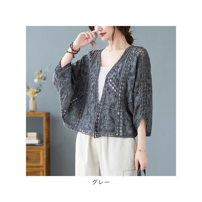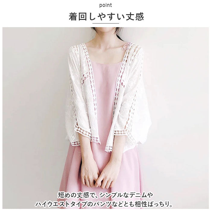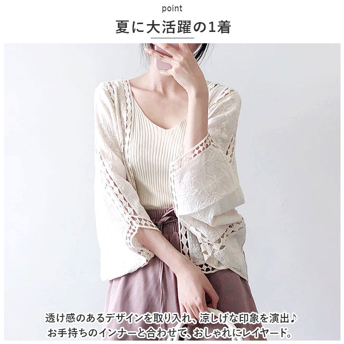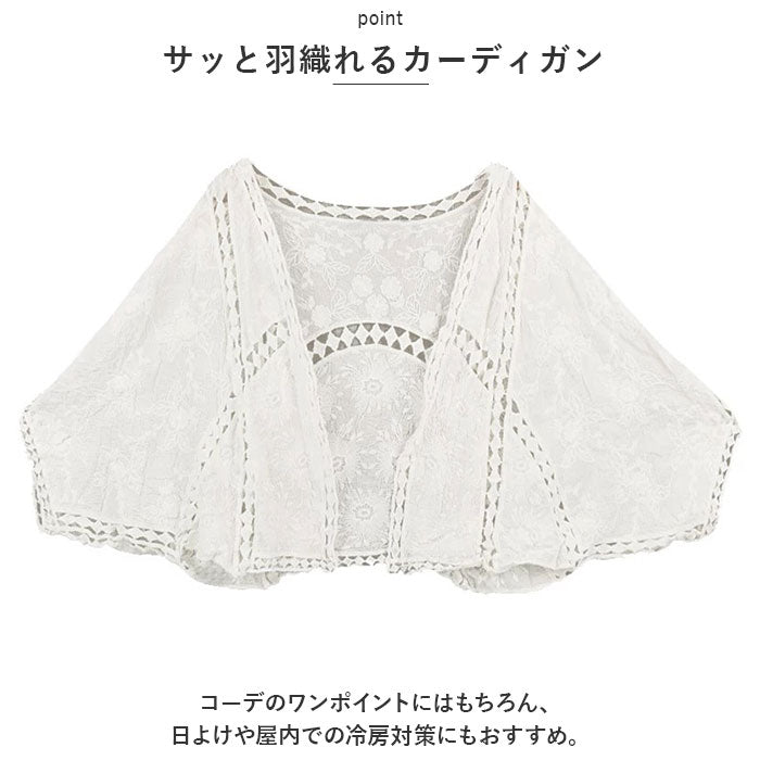サマー カーディガン レース 通販 カーデガン サマーカーディガン レディース 春夏 冷房対策 羽織り 夏 羽織もの 春 トップス ゆったり ドロップショルダー 綿 コットン ボリューム袖