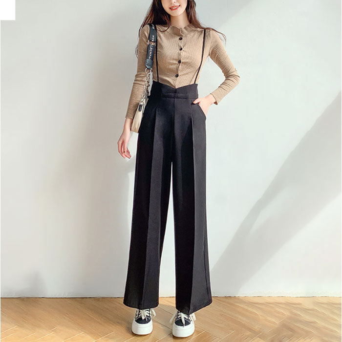・華奢な肩紐を付け、パンツ感覚で着用♪ゆとりを持たせた、すとんと落ちるレッグライン。
