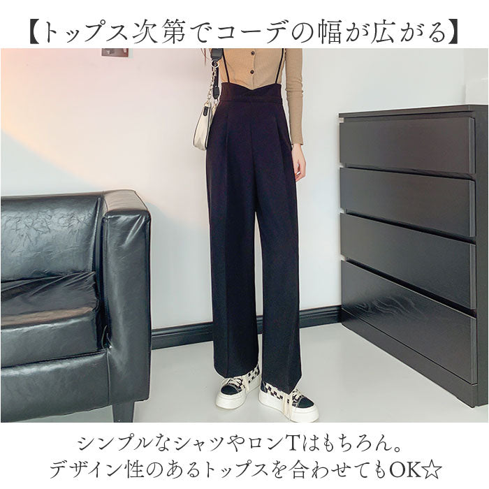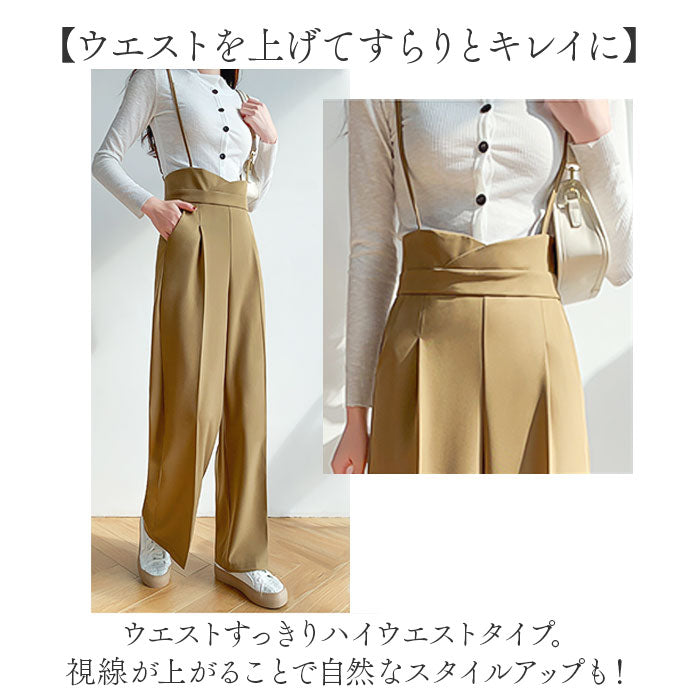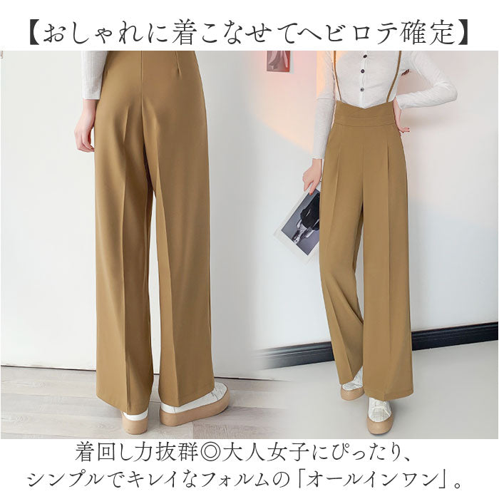 サロペット パンツ きれいめ 通販 オールインワン レディース 大人 サロペットパンツ ワイドパンツ オーバーオール ボトムス ロングパンツ ズボン 長ズボン サロペ 肩紐 ハイウエスト