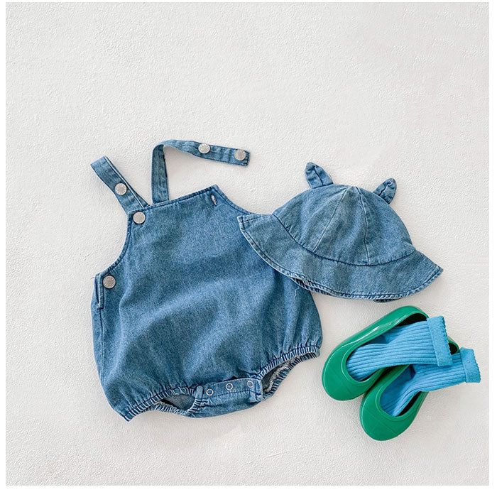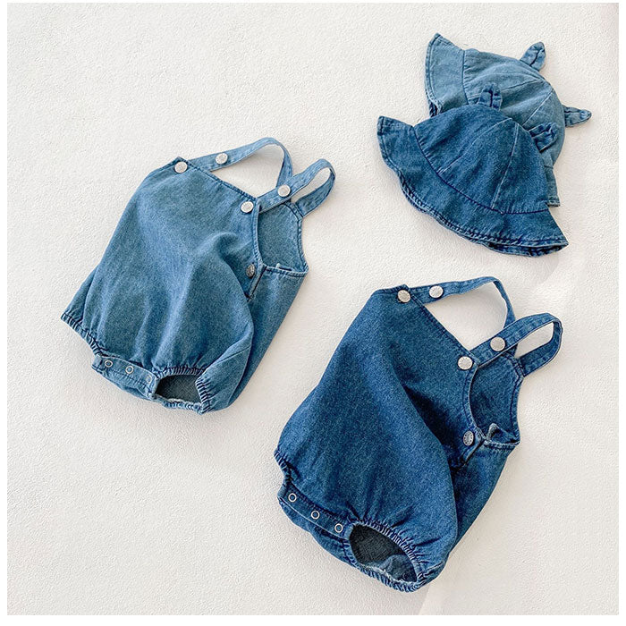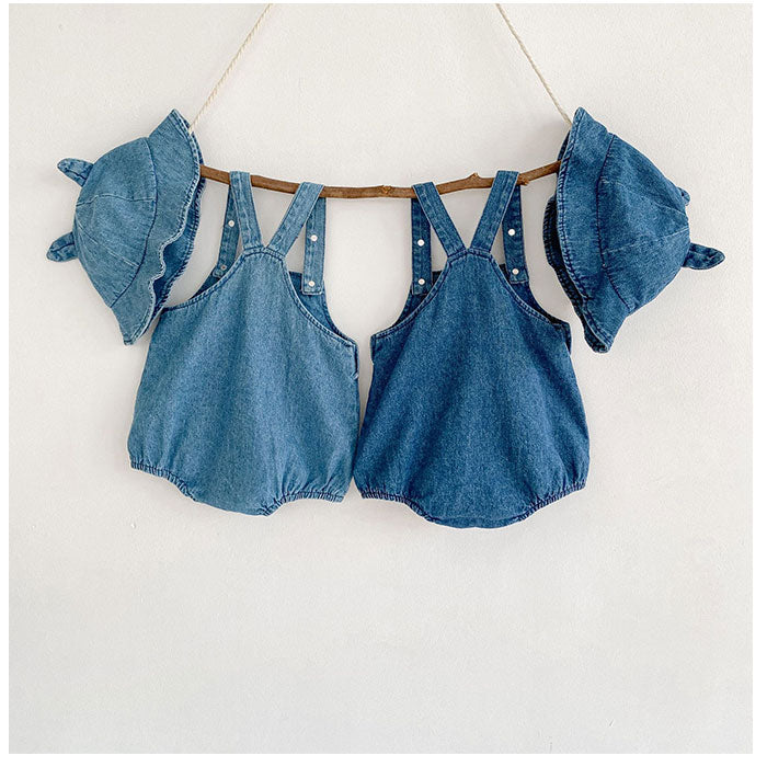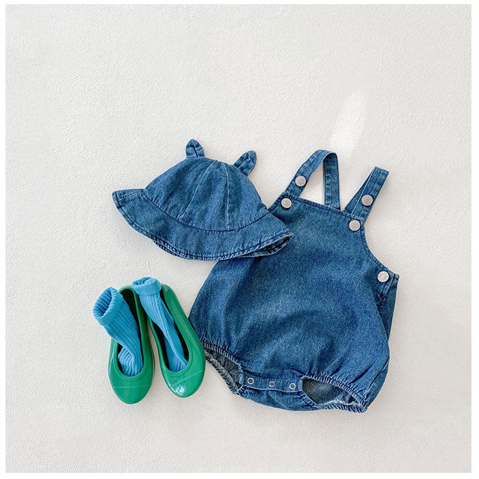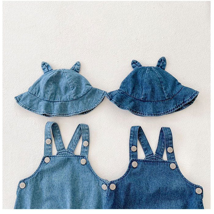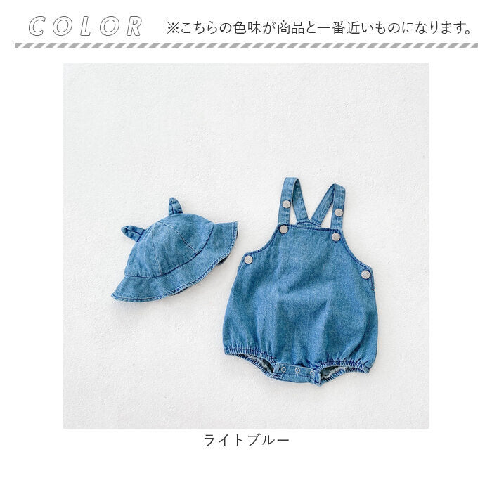 サロペット ベビー 通販 ベビー服 耳付き帽子 セット ロンパース 赤ちゃん baby かわいい 男の子 女の子 デニム デニムサロペット オーバーオール 男女兼用 お出かけ 写真撮影 衣装