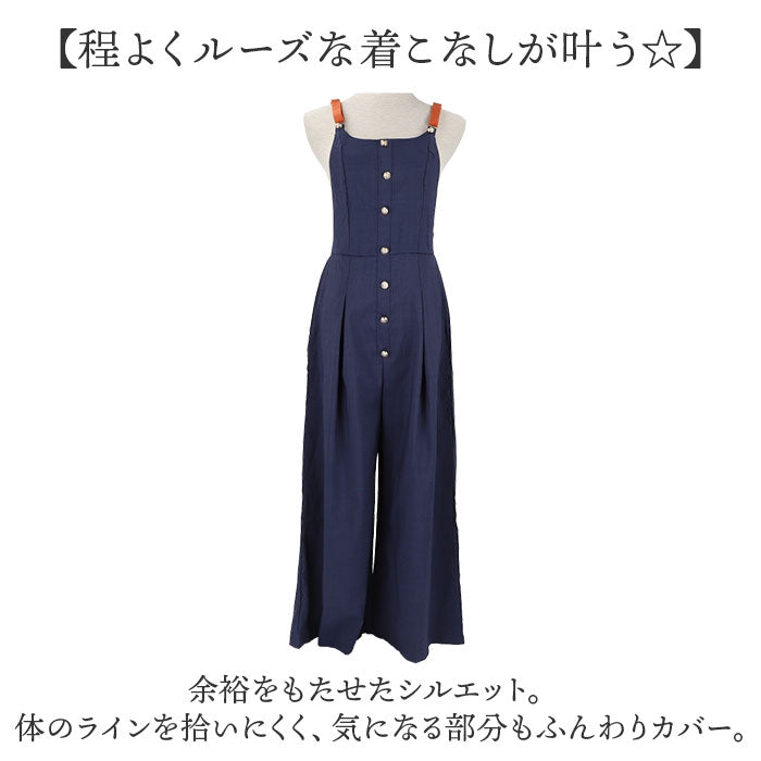 サロペット レディース 通販 ワイドパンツ パンツ つなぎ サロペ オーバーオール オールインワン ロング ロング丈 体型カバー ゆったり きれいめ シンプル 無地 ボタン 通勤 通学 春 夏