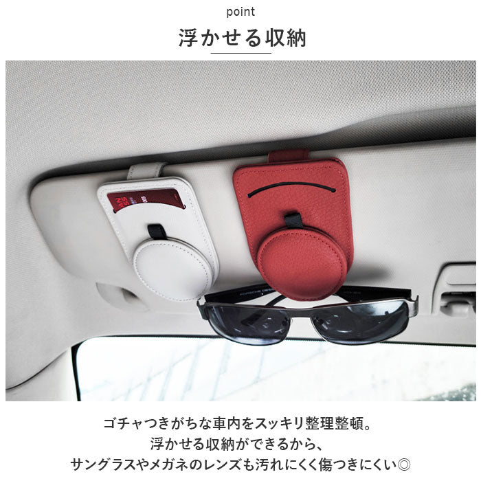 サングラスホルダー 通販 メガネクリップ メガネホルダー 車 車載 車用 カードホルダー 眼鏡 サングラス ホルダー クリップ サンバイザー 収納 マグネット レザー コンパクト カード