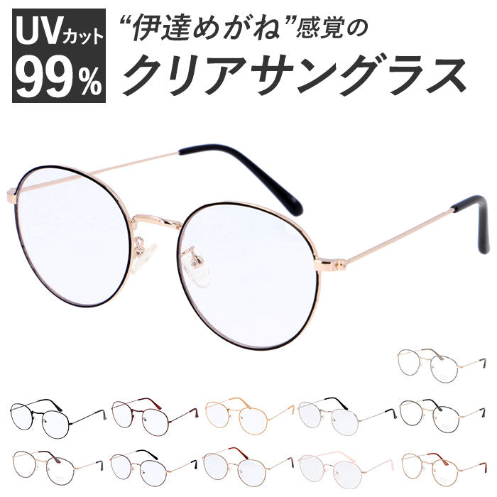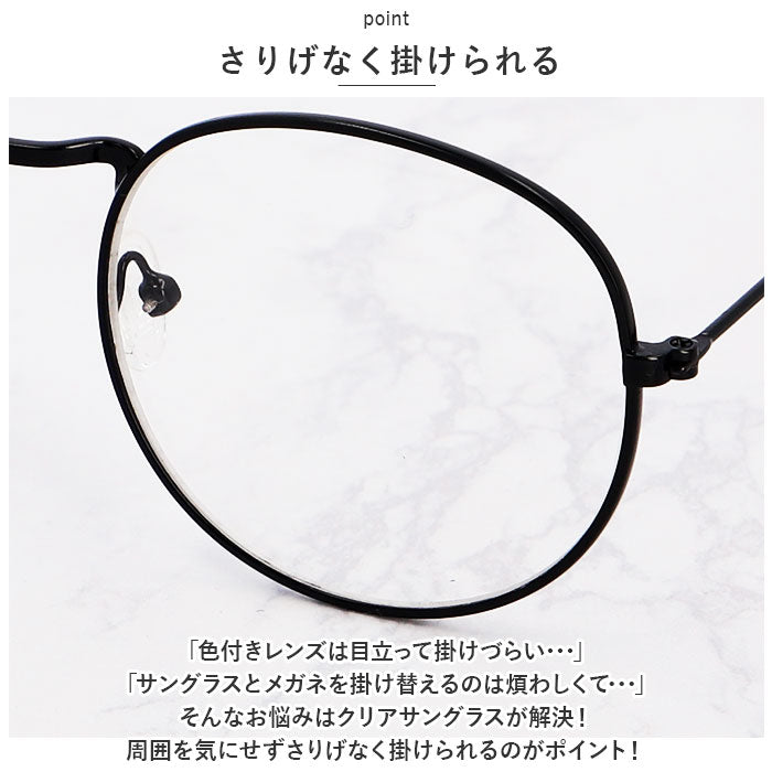 サングラス クリアレンズ 通販 伊達メガネ 伊達眼鏡 伊達めがね だてめがね クリアサングラス ボストン グラサン レディース メンズ 紫外線カット uvカット クリアレンズ おしゃれ