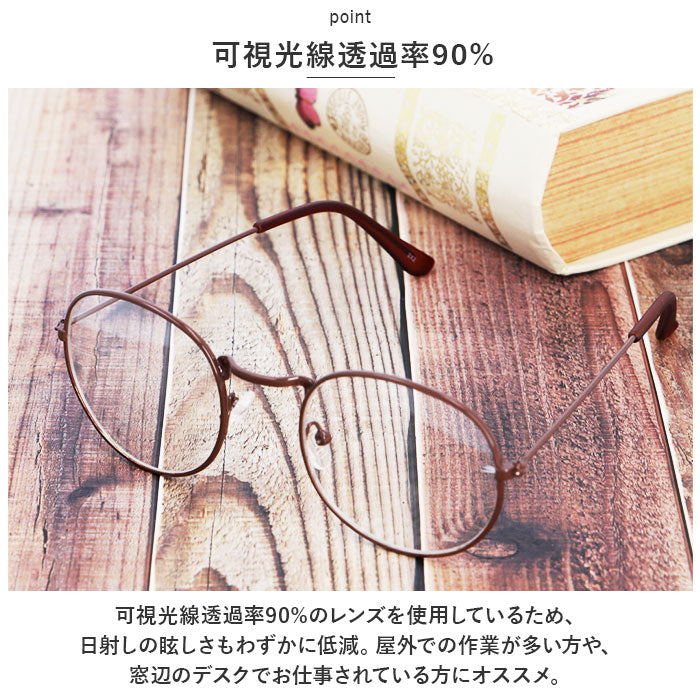 ・可視光線透過率90%のレンズを使用しているため、日射しの眩しさもわずかに低減。屋外での作業が多い方や、窓辺のデスクでお仕事されている方にオススメ。