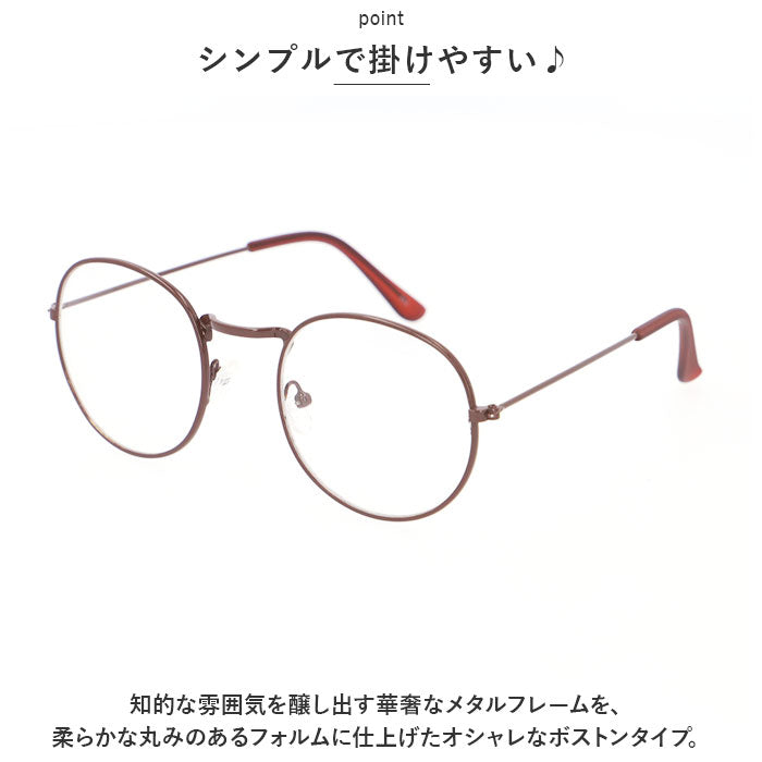 ・知的な雰囲気を醸し出す華奢なメタルフレームを、柔らかな丸みのあるフォルムに仕上げたオシャレなボストンタイプ。