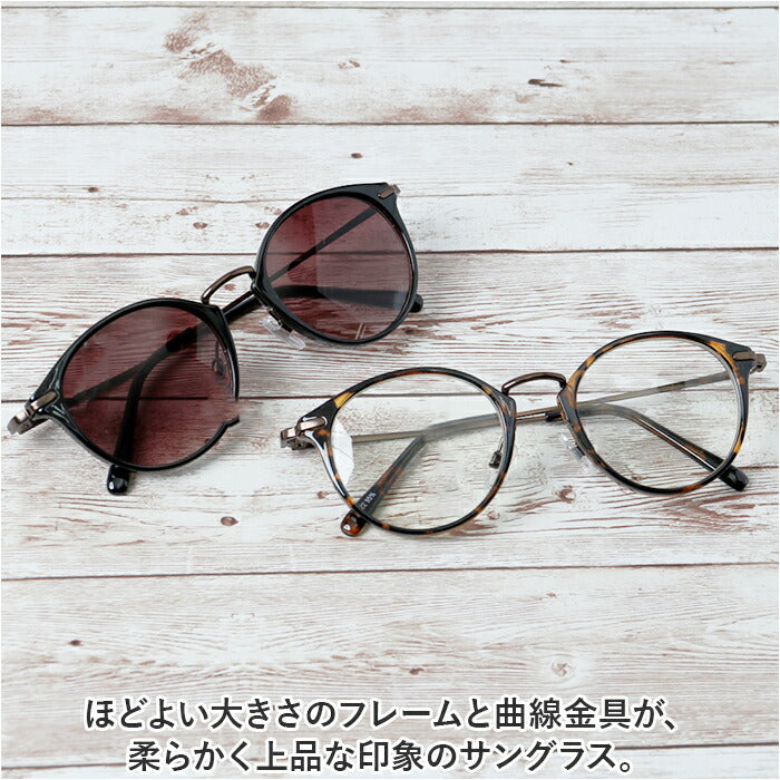 ・ほどよい大きさのフレームと曲線金具が、柔らかく上品な印象のサングラス。