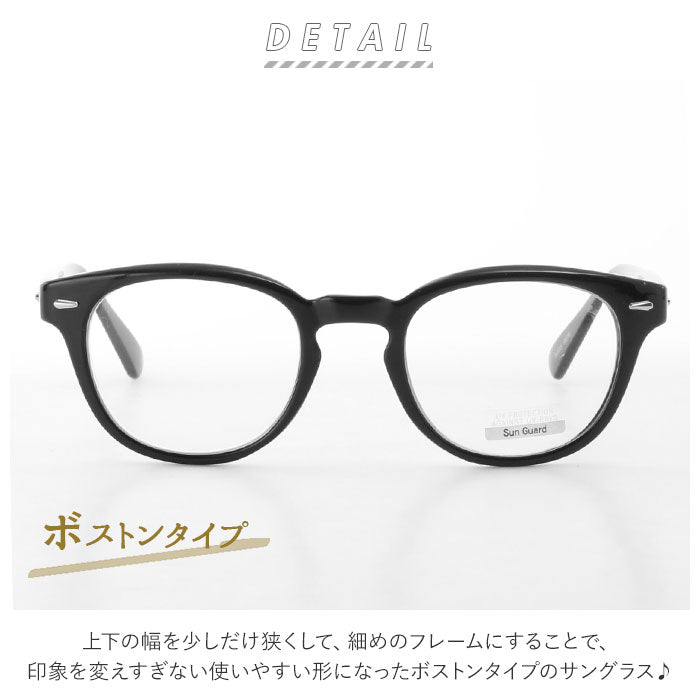 ・上下の幅を少しだけ狭くして、細めのフレームにすることで、印象を変えすぎない使いやすいカタチになったボストンタイプのサングラス♪