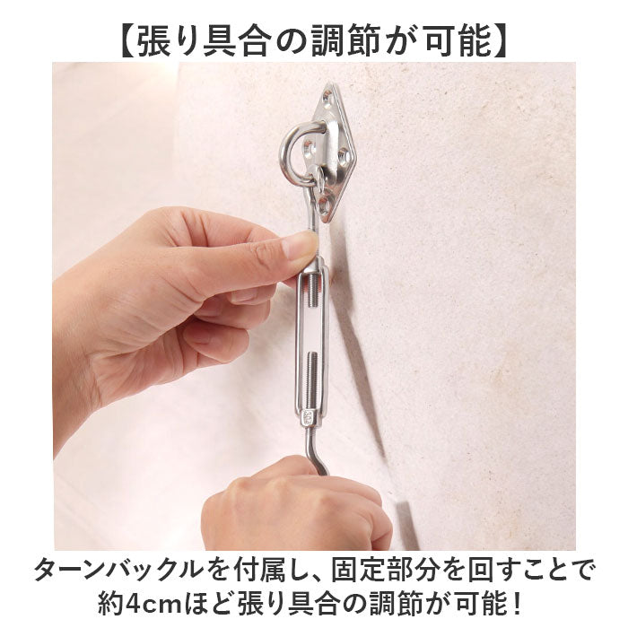 ・ターンバックルを付属し、固定部分を回すことで約4cmほど張り具合の調節が可能!