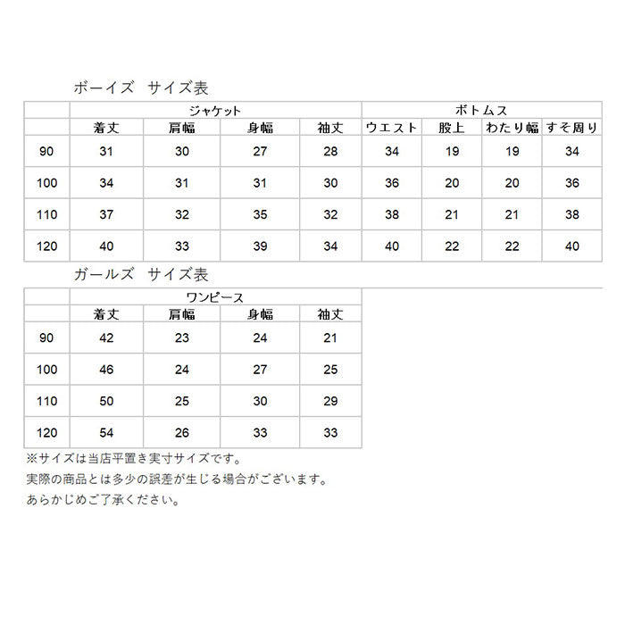 ・男の子用は、ジャケット・ボトムス・帽子の3点セット。
