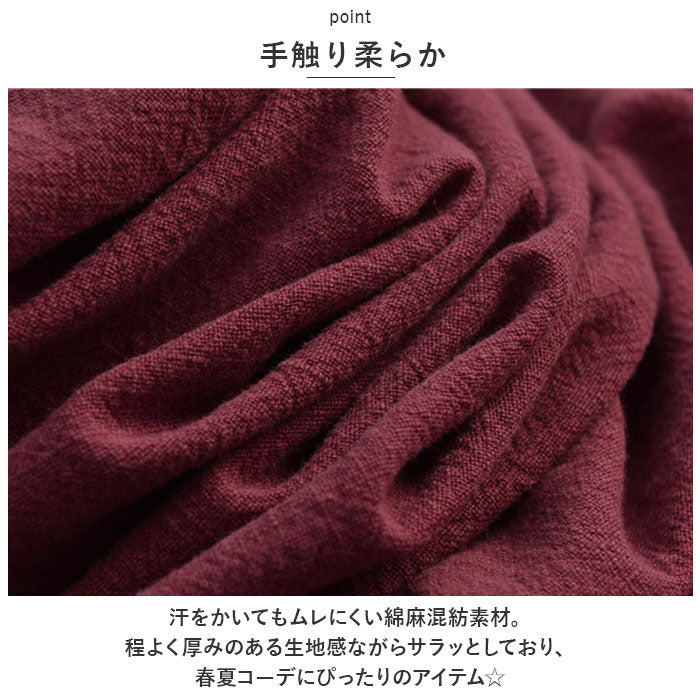・汗をかいてもムレにくい綿麻混紡素材。程よく厚みのある生地感ながらサラッとしており、春夏コーデにぴったりのアイテム☆