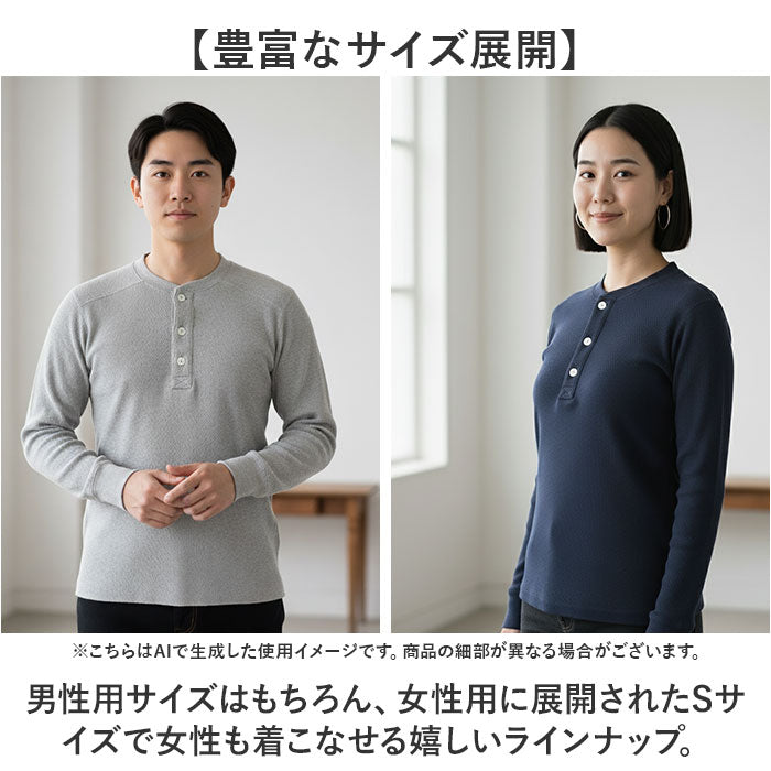 サーマル ヘンリーネック 通販 ロングTシャツ メンズ 長袖tシャツ 長袖 tシャツ カットソー HOUSTON ヒューストン トップス ワッフル 綿 コットン レディース 春 秋冬 無地 リブ アメカジ