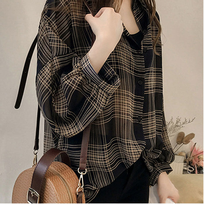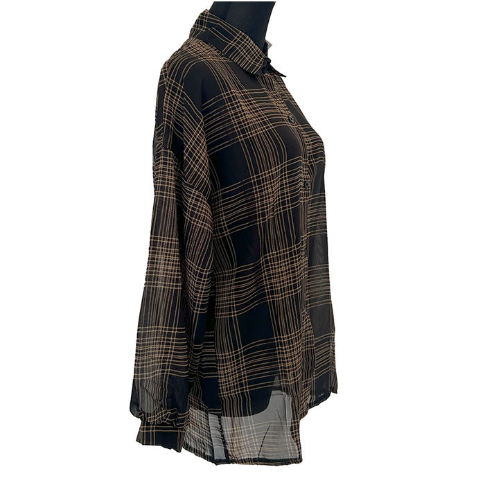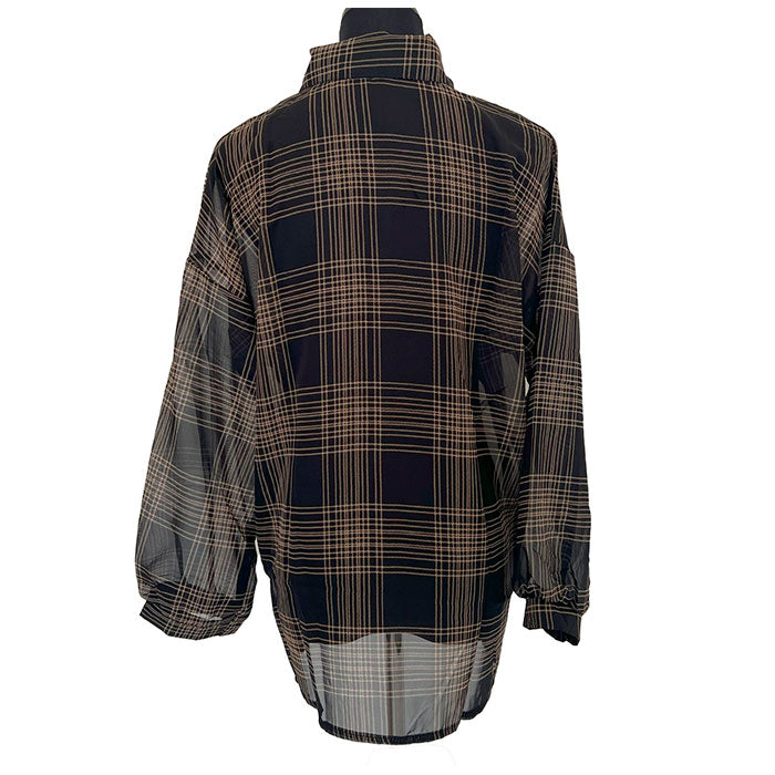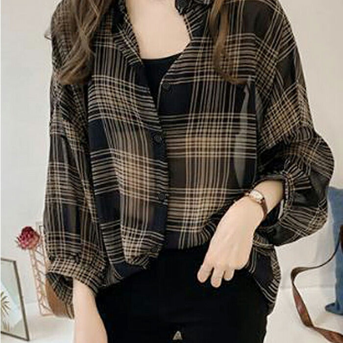 長袖チェックシアーシャツブラウス