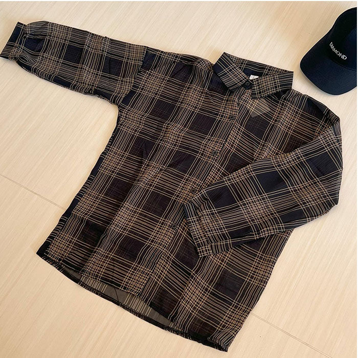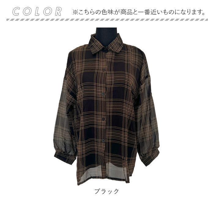 シアーシャツ チェック 通販 シアーブラウス シアー ブラウス 長袖シャツ レディース トップス シースルーシャツ シャツ チェック柄 薄手 透け感 羽織り 春夏秋 冷房対策 カジュアル